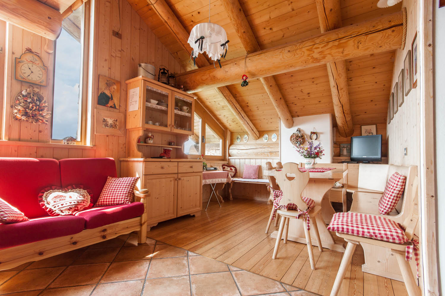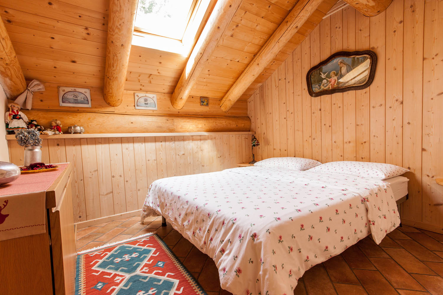 EIGENSCHAFTEN: Einladende und komfortable Struktur, komplett aus Holz, konzipiert für die Unterbringung von zwei Personen, die dem Stress der Stadt entfliehen und das Vergnügen am Verbringen eines Urlaubs wiederentdecken möchten ein paar Tage draußen. Im Inneren besteht Baita Aurora aus einem Wohnzimmer mit Kochnische, Geschirrspüler, Fernseher, Holzofen und Elektroherd; ein Schlafzimmer mit Doppelbett, Badezimmer mit Badewanne/Dusche und kleinem Schrank. Alles auf einer Fläche von ca. 55 m2 angeordnet. Draußen gibt es eine große Grünfläche mit Garten, Parkplatz, Tisch mit Bank und Grill.