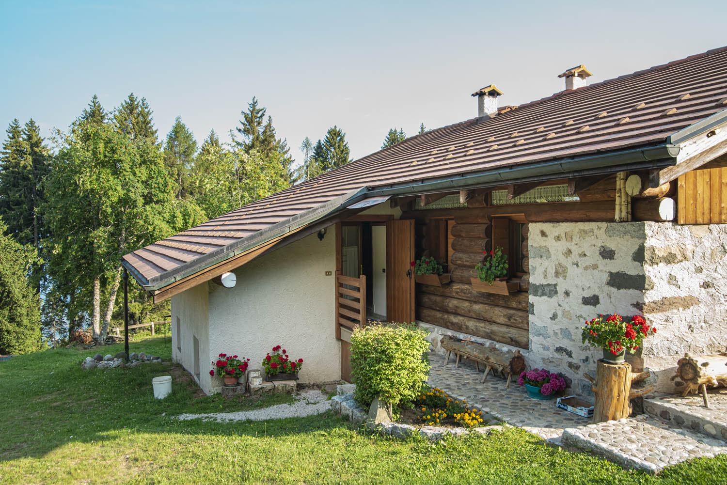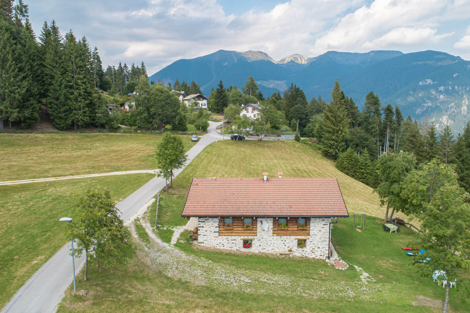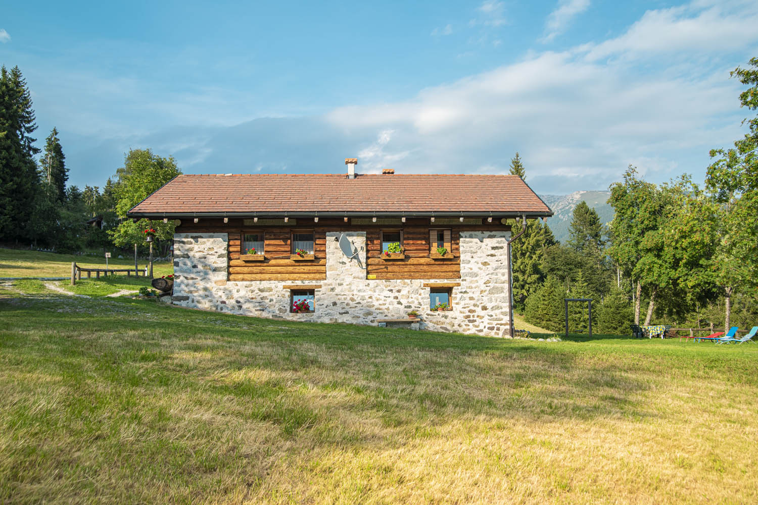 EIGENSCHAFTEN: Die Hütte wurde aus einer Scheune renoviert, wobei die typischen Merkmale der Vergangenheit beibehalten wurden, mit Lärchenbalken und freiliegenden Steinen. Im Erdgeschoss Erholungsbereich, Gartengeräte, Grill. Im Zwischengeschoss befinden sich die Unterkünfte mit separaten und unabhängigen Eingängen. Der Garten ist sehr groß, mit der großen umliegenden Rasenfläche.