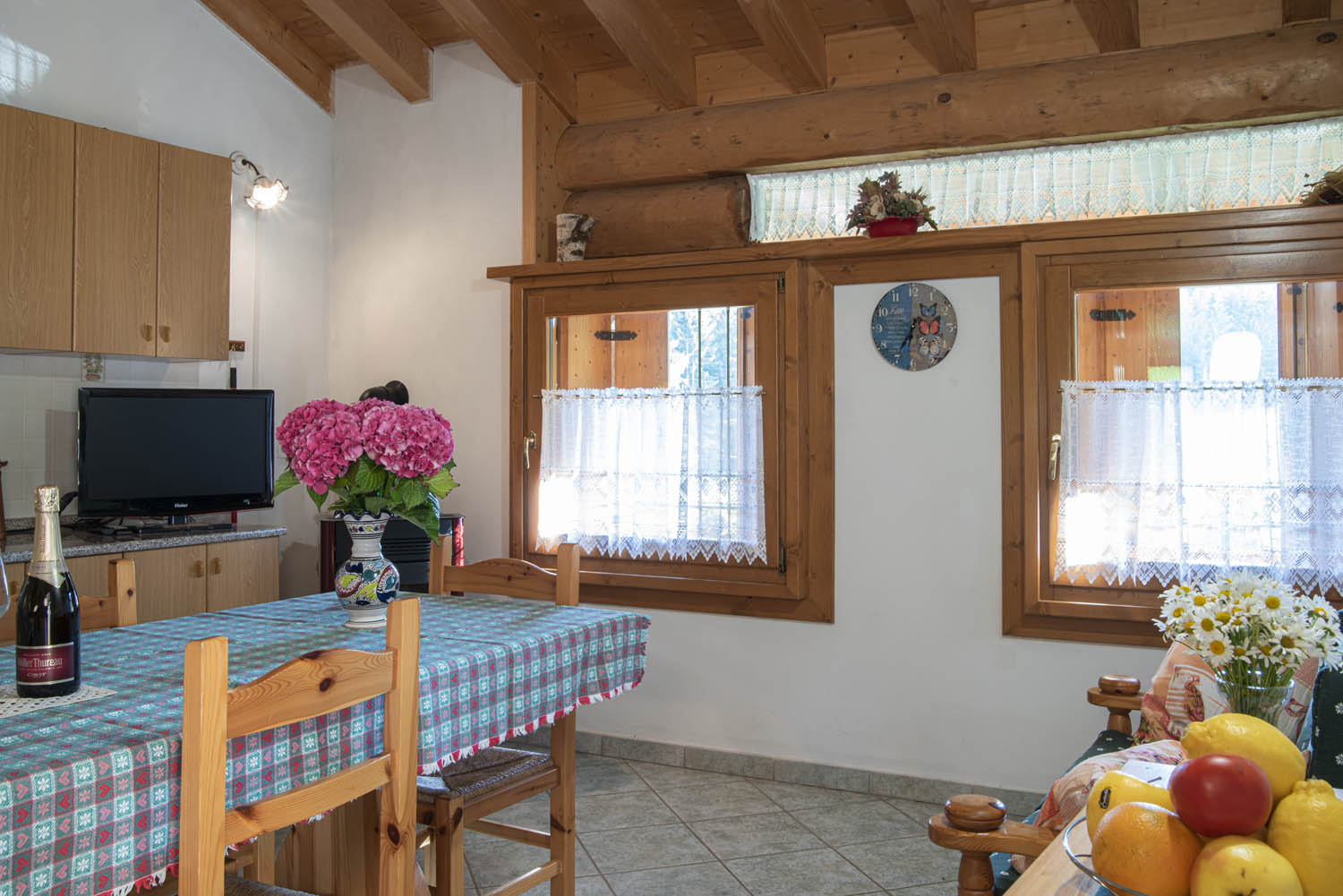 FEATURES: The cabin has been renovated from a barn, maintaining the typical characteristics of the past, with larch beams and exposed stones. On the ground floor recreation area, garden equipment, barbecue. On the mezzanine floor there are the accommodations with separate and independent entrances. The garden is very large, with the large surrounding lawn.