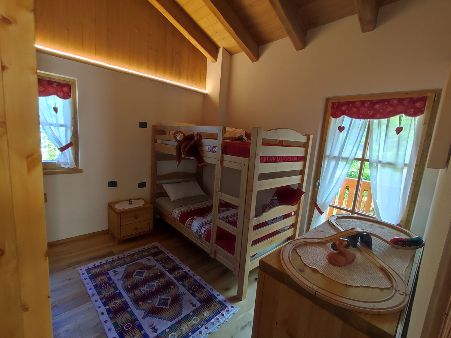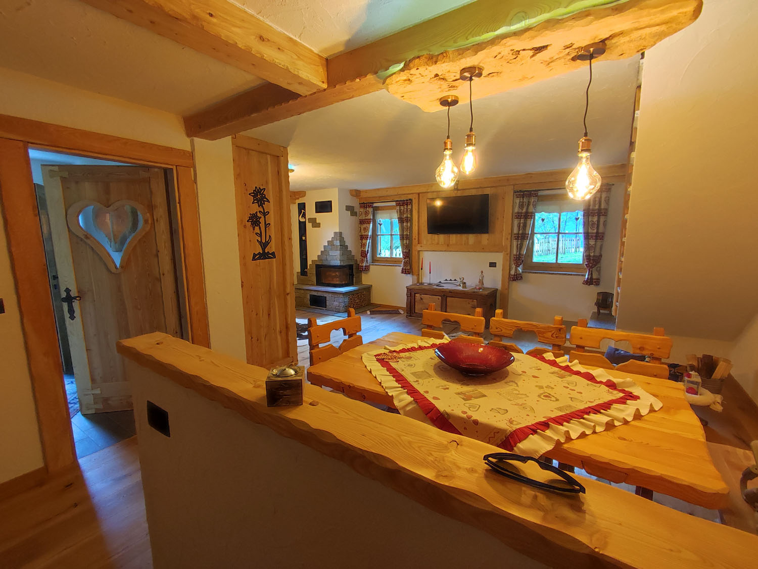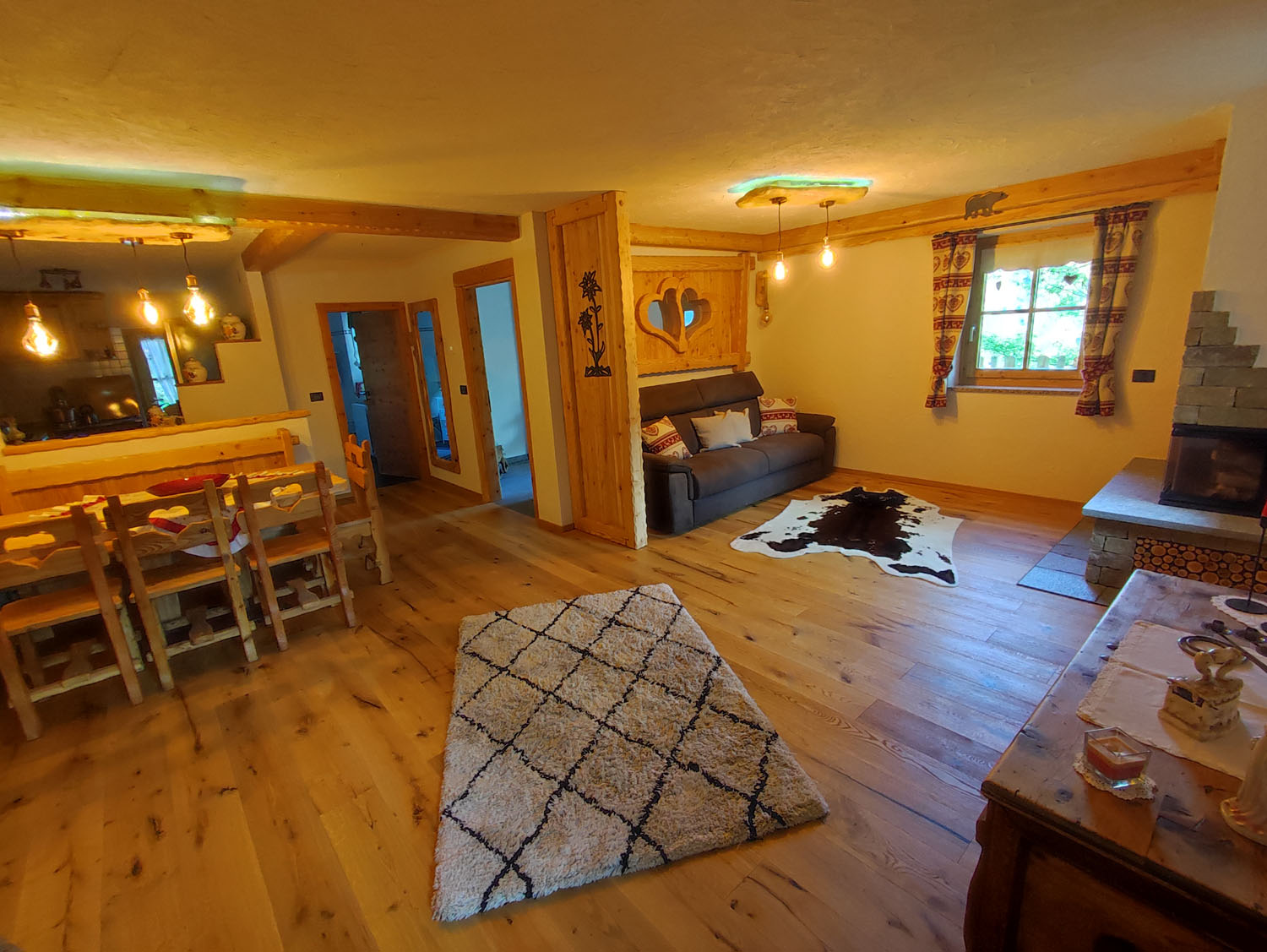 LOCATION: The chalet is located in Vermiglio at 1350 meters above sea level in the Upper Val di Sole, in a perfect position for nature lovers and those who enjoy both summer and winter sports. We are on the outskirts of the forest along the provincial road leading to Passo del Tonale, easily accessible by car with private parking. The chalet is very close to the ski slopes (only 7 km from Passo del Tonale, 12 km from Val di Pejo, and 15 km from Marilleva 900), and the place enjoys sunshine from morning to evening.