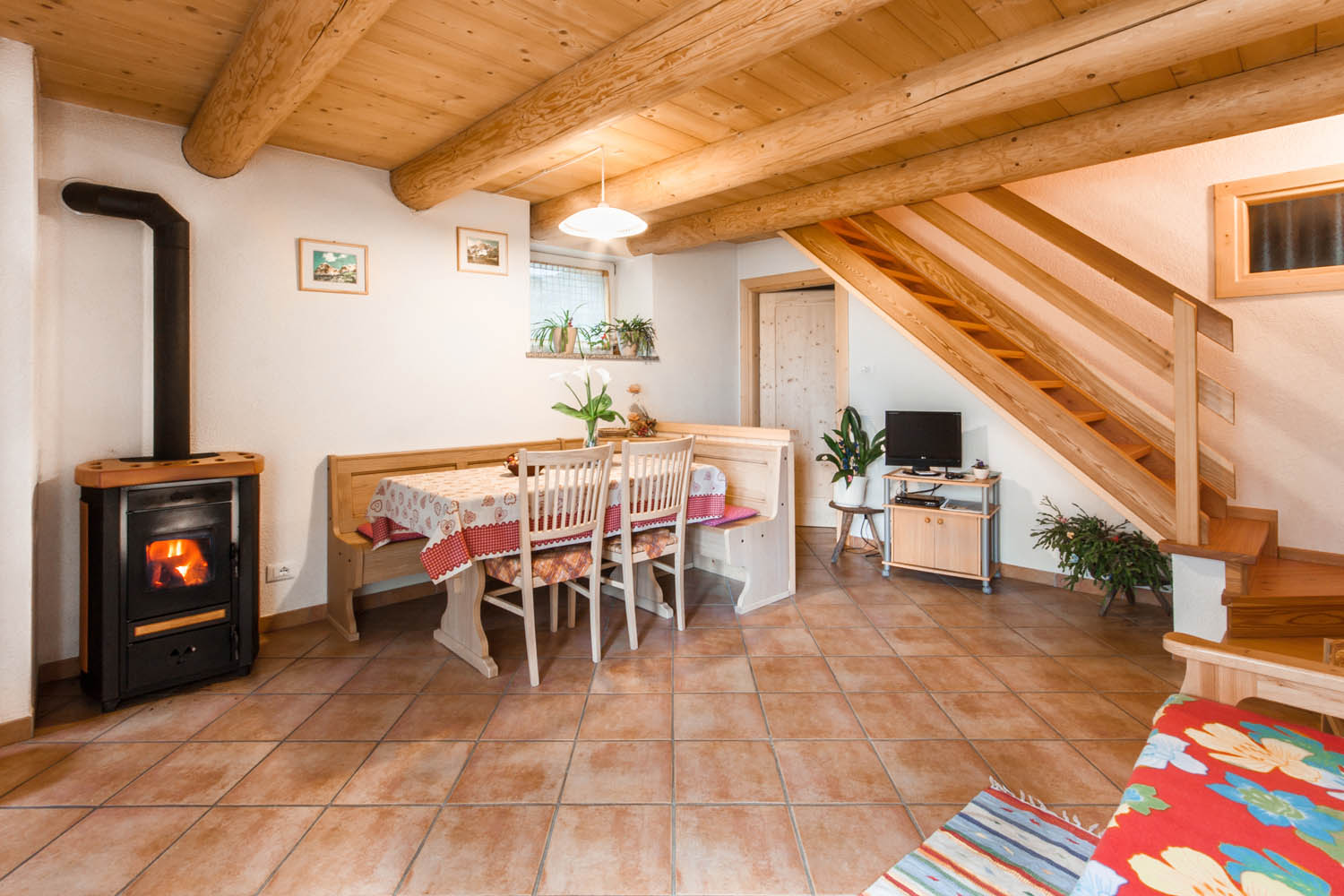 FEATURES: Portion of a characteristic mountain structure, built in stone and wood, renovated in a welcoming and comfortable way, on two floors. On the ground floor there is a large kitchen/living room and wood stove, pantry/storage room, bathroom with shower; on the first floor a double bedroom, on the mezzanine floor a twin bedroom. Outside there is green space available with barbecue and private parking.