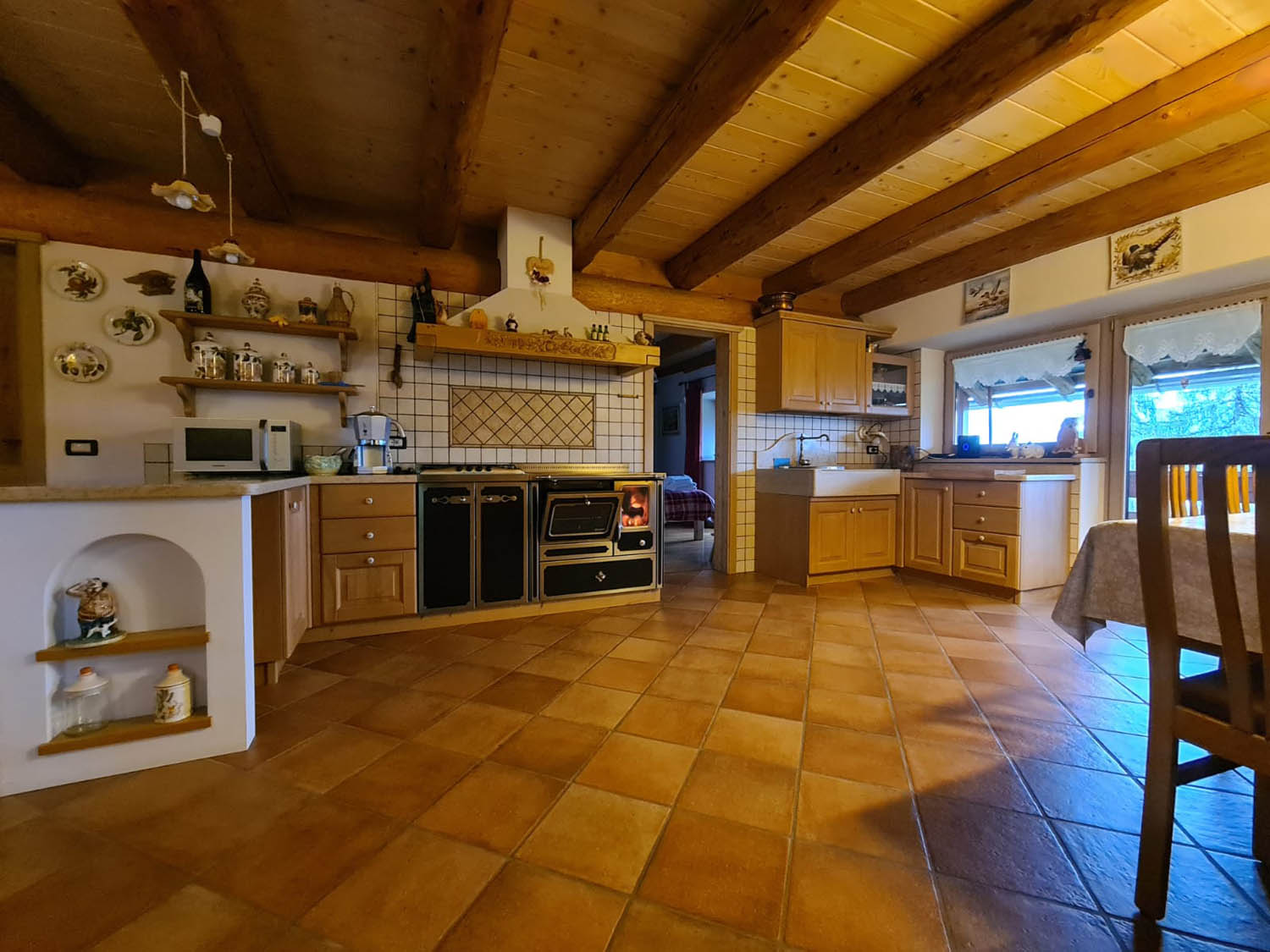 FEATURES: The cabin, converted from an old barn from the early 1900s, is the result of a recent renovation. It develops on the first floor and is attached to a flat, fenced garden, equipped with deckchairs and a barbecue area. On the ground floor there is another residential unit. The cabin is equipped with a large brick and marble kitchenette, with gas hob, wood-burning oven, fridge with freezer and dishwasher, a storage room and a washing machine. The main bedroom has a double bed and a balcony overlooking the mountains, while the second bedroom has two single beds. The bathroom is equipped with toilet, bidet, sink with mirror and shower. In the living area there is a wood stove with a small glass, with heating function and hob. Alternatively, it is possible to use independent heating, with radiators controlled by a thermostat in each room. Next to the garden there is a private car park. Included in the price are kitchen equipment, crockery, bedroom and bathroom linen, wood for the stove and hiking maps of the area.
