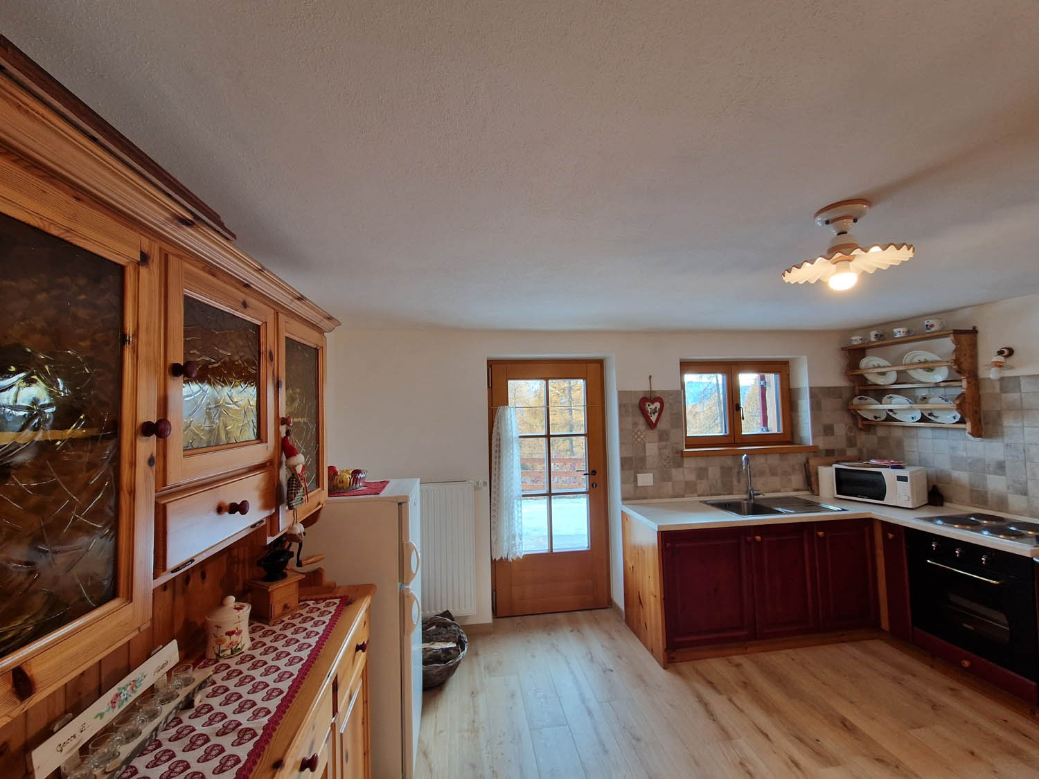 FEATURES: Single cabin, recently renovated on two floors. On the ground floor, kitchen, living room with sofa bed, dishwasher, gas, fridge, electric oven, wood stove and television; double bedroom, two bathrooms with tub and shower, washing machine, processing and closet. On the first floor, reachable by an external staircase, two double and/or single bedrooms with service bathroom. Outside, large green space, garden with parking space, table, bench and barbecue. There is an Internet station in the hut. Equipped with independent heating.