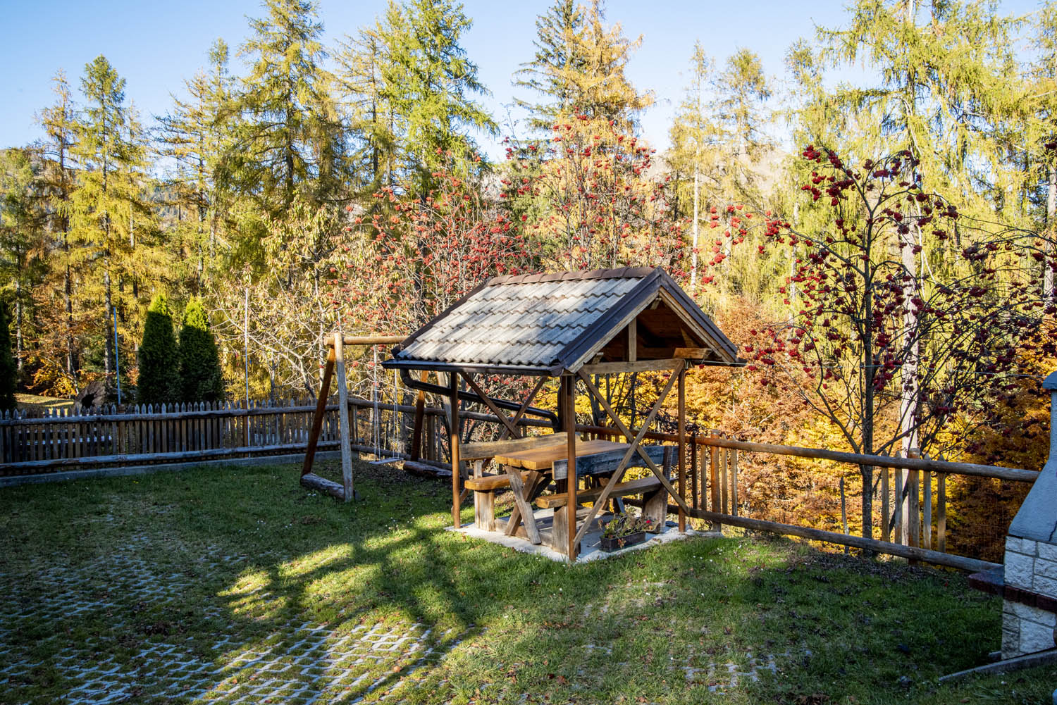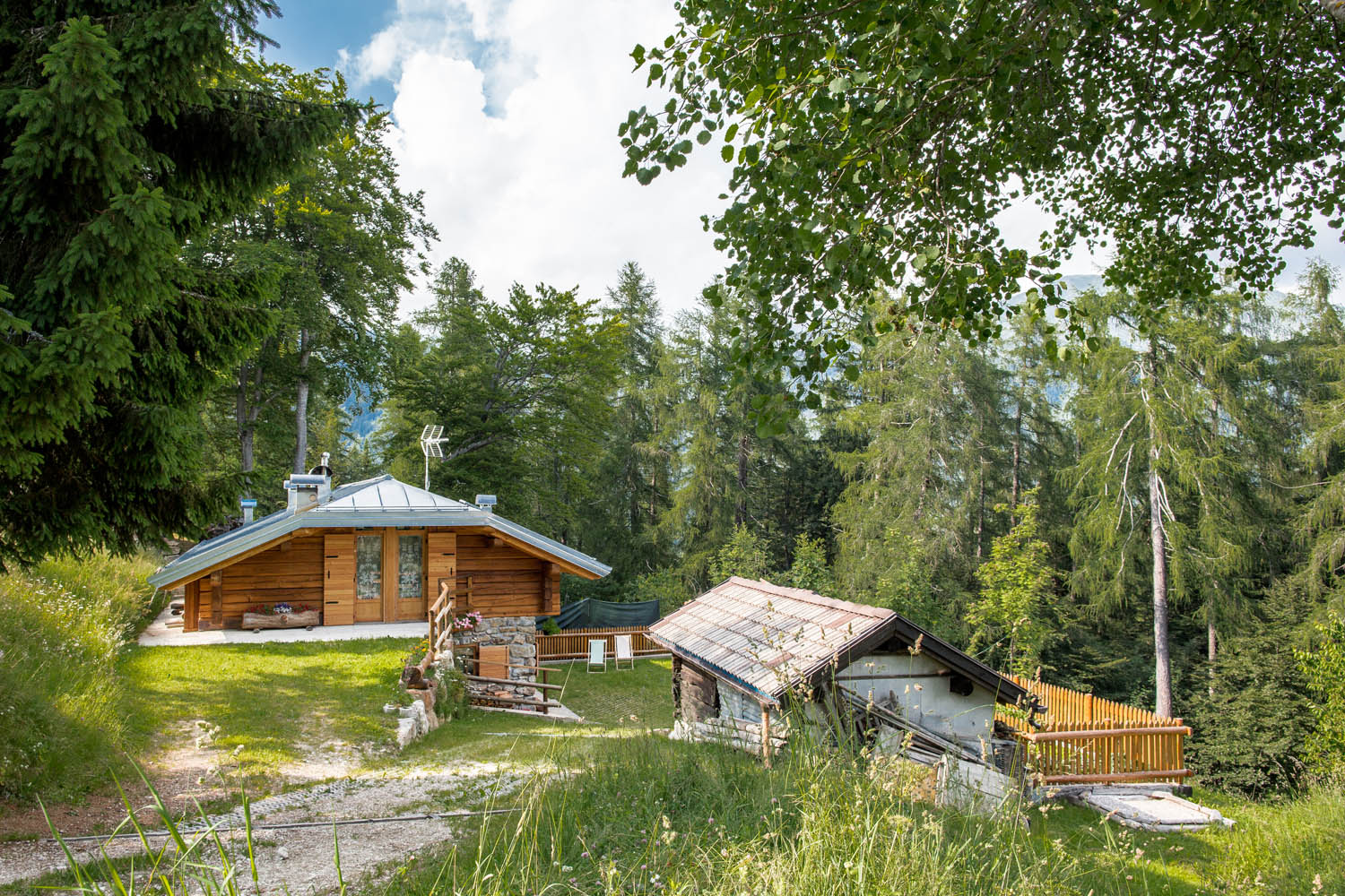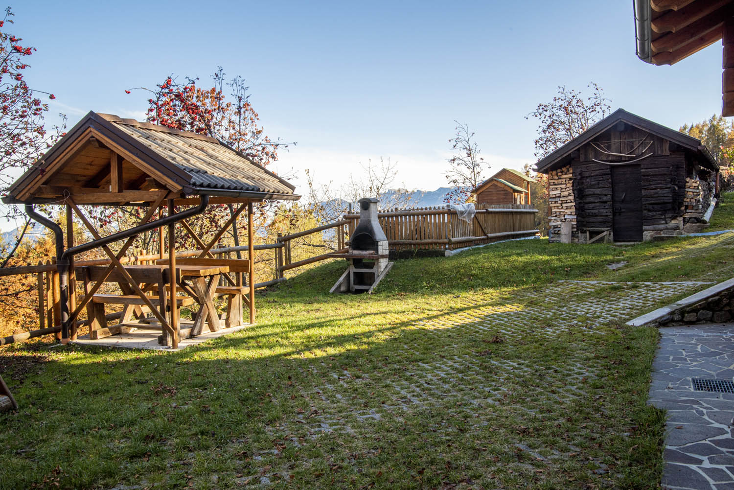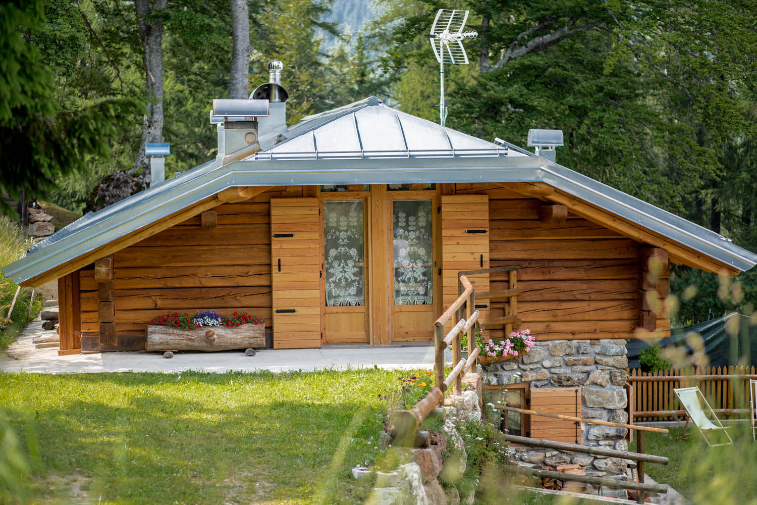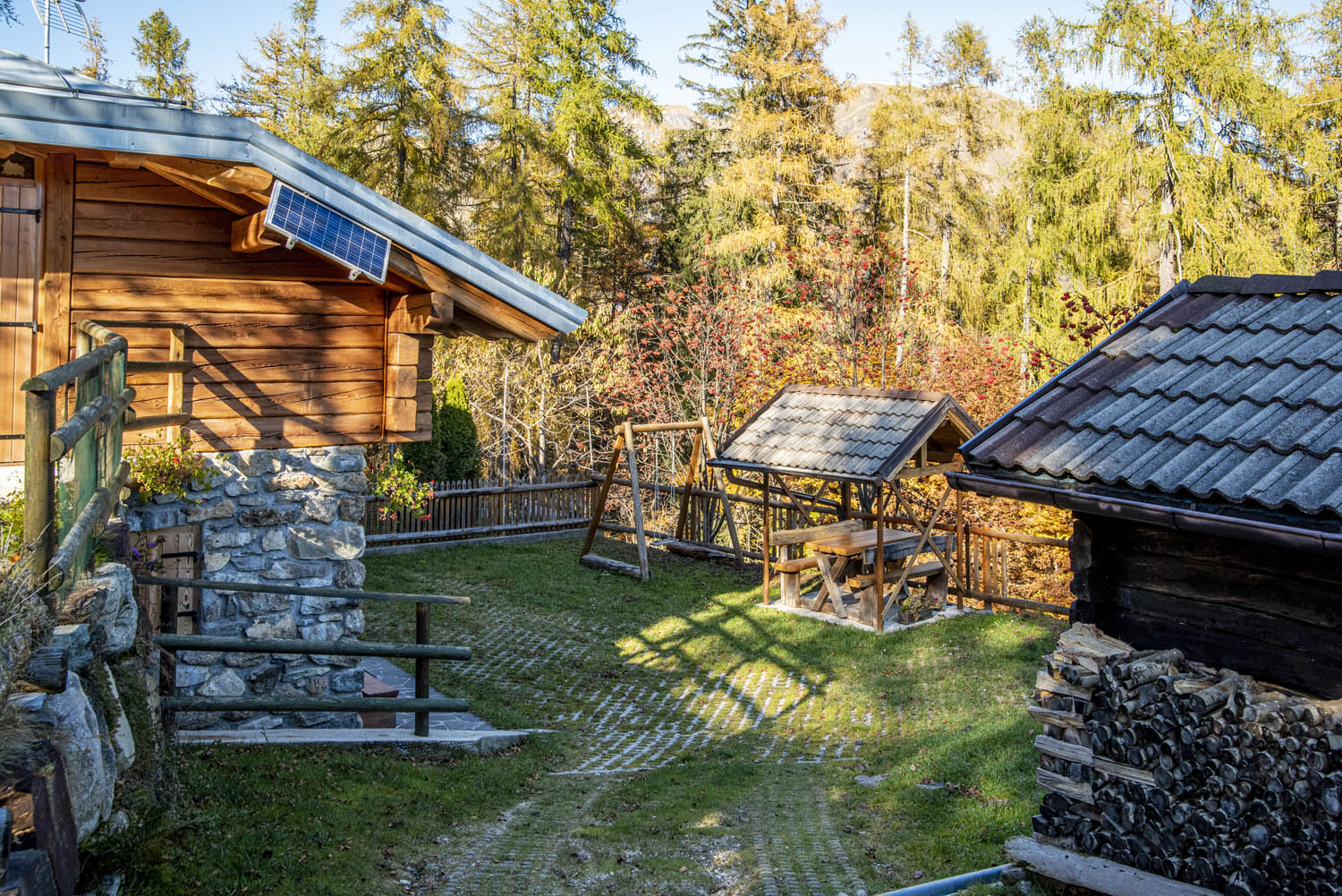 CARATTERISTICHE: Porzione di Baita in pietra locale e legno autoctono, di recente ristrutturazione, disposta su due piani. Al piano terra ampio locale cucina/soggiorno con caminetto e stufa a legna, frigo รจ piccolo – tipo quello dei camper, locale dispensa/ripostiglio, bagno con doccia; al piano primo mansardato due camere matrimoniali, una camera doppia; riscaldamento centralizzato e acqua calda con termo-cucina, energia elettrica con pannelli fotovoltaici. All’esterno spazio verde a disposizione con barbecue e parcheggio privato.