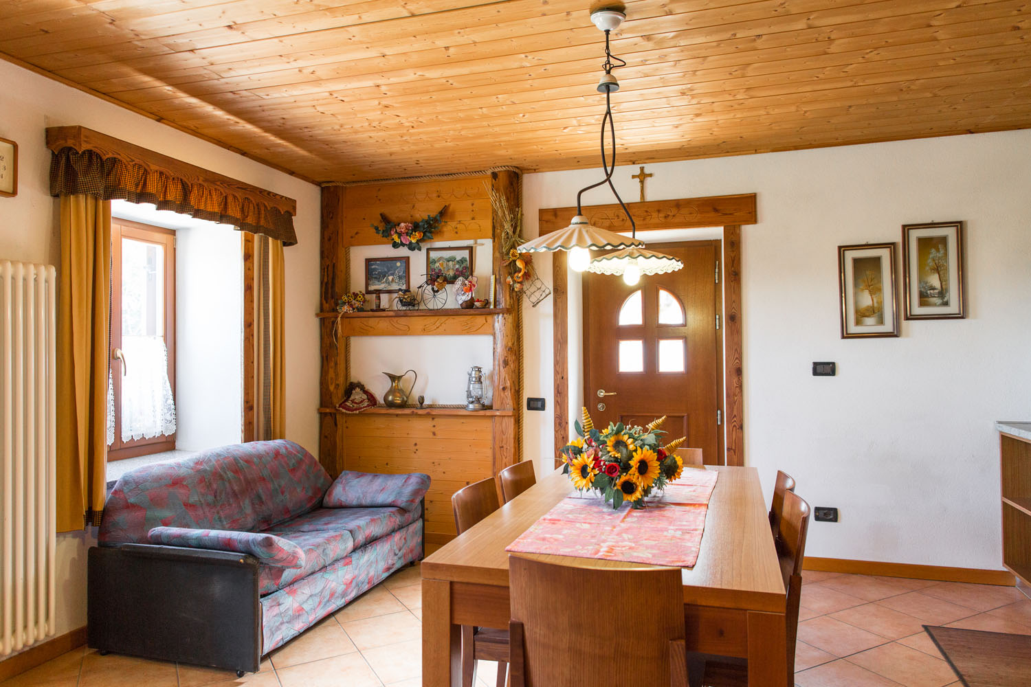 CARATTERISTICHE: Costruzione rurale di sasso e legno disposta su un piano, finemente ristrutturata e dotata di tutti i comfort. L’appartamento è così suddiviso in un ampio locale di soggiorno e angolo cottura completo di utensili e accessori, bagno con doccia e lavatrice, 2 camere matrimoniali, 1 camera con due letti singoli, 1 divano, 6 posti letto più una culla per bimbi fino a 4 anni, terrazzo prendisole attrezzato con sdraio, gazebo attrezzato e barbecue. Struttura dotata di Wi-Fi illimitata e TV satellitare. Riscaldamento centralizzato. Parcheggio privato, spazio verde a disposizione e recinzione per animali.