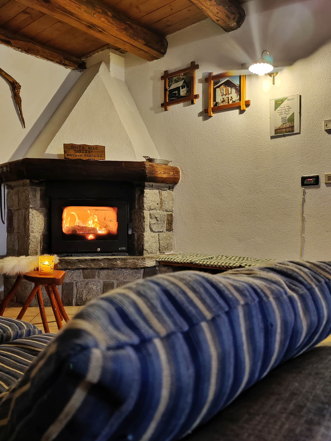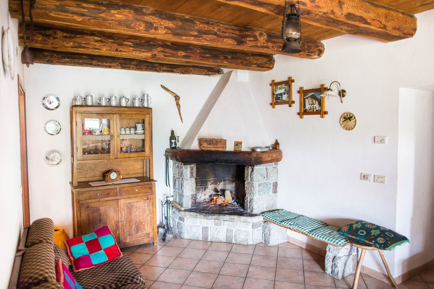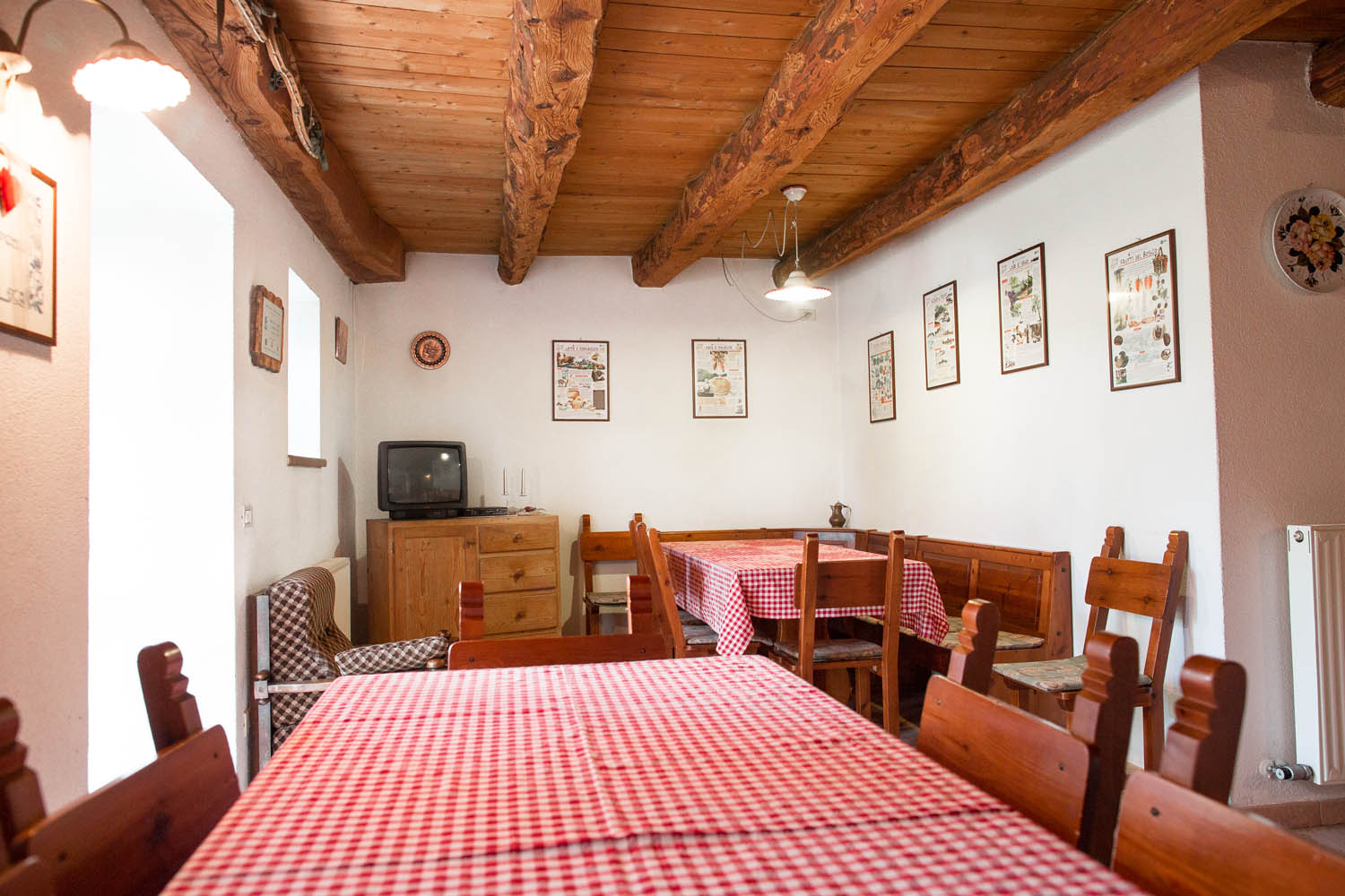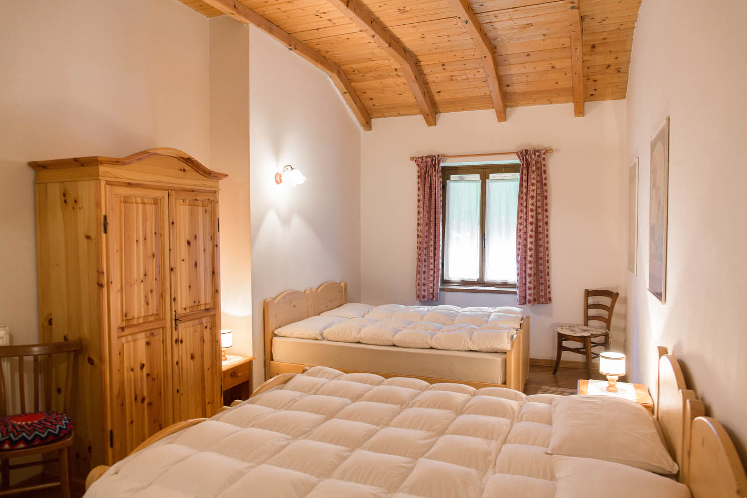 CARATTERISTICHE: Tipica costruzione di montagna in sassi e legno disposta su due piani. Al piano terra ampio soggiorno dotato di caminetto e TV; cucina con angolo cottura, stufa a legna, forno; bagno e camera singola. Al primo piano 3 camere: 1 quadrupla, 1 tripla e una doppia, ciascuna dotata di bagno con doccia. Giardino con splendido ruscello, attrezzato con barbecue, sdraio e tavolo in legno. Diversi posti auto privati.