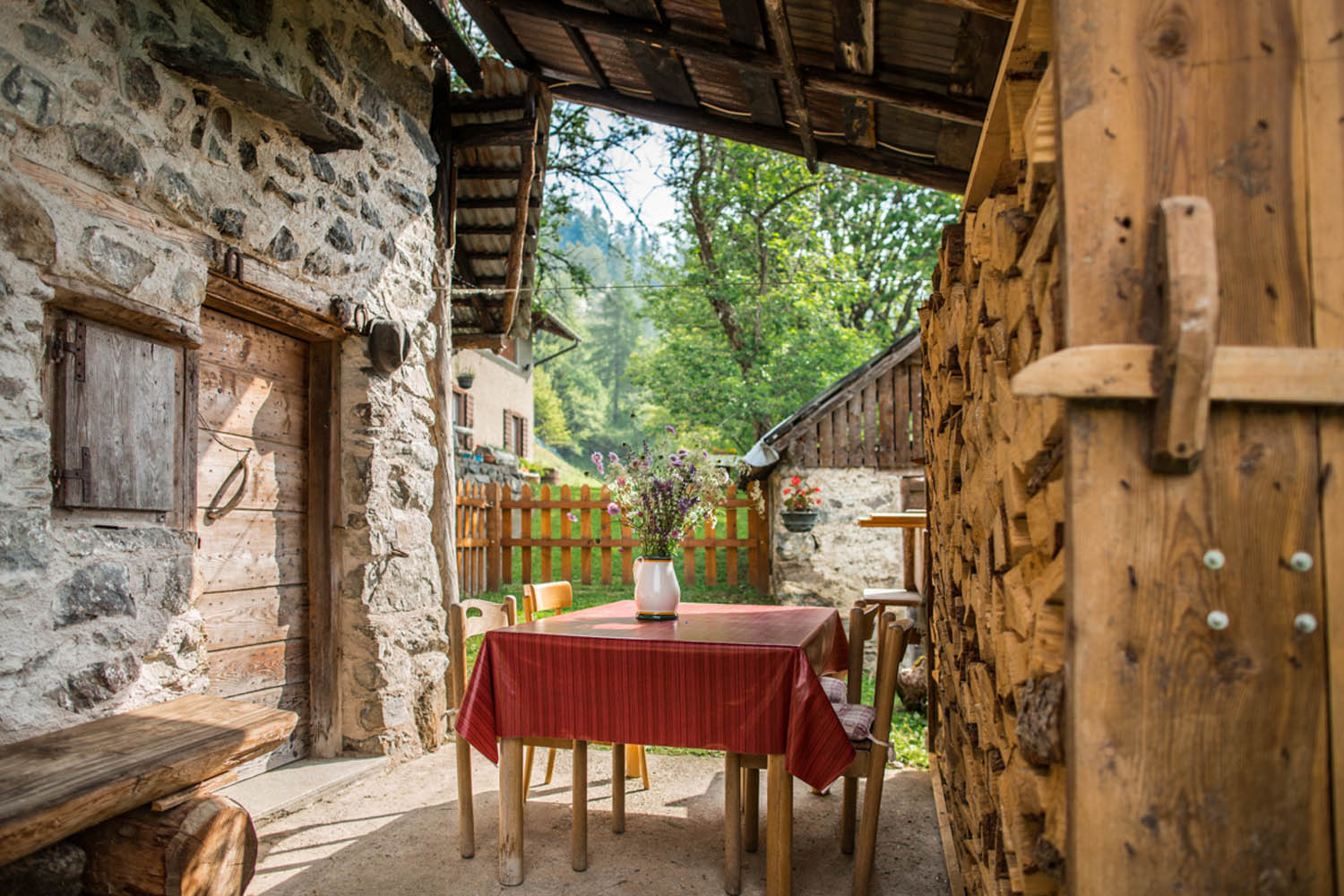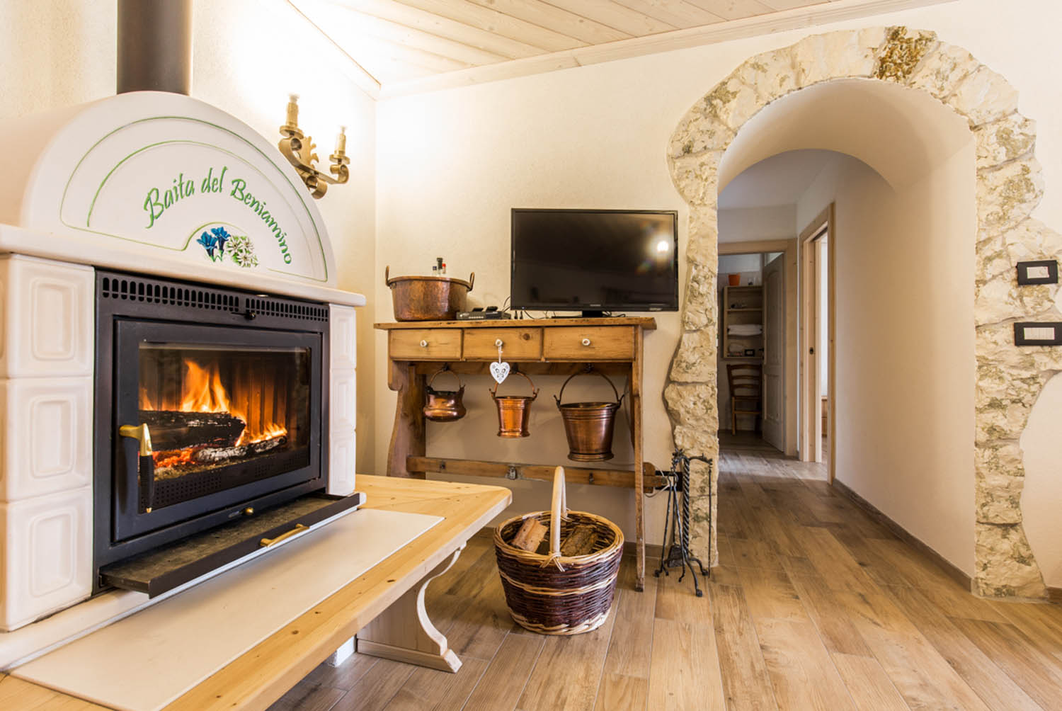 CARATTERISTICHE: La baita è stata ristrutturata nel 2015, curando i dettagli e l’isolamento termico. Si sviluppa al piano terra, ed è annessa ad un piccolo giardino recintato e attrezzato con sdraio e zona barbecue. E’ dotata di angolo cucina (con piano cottura, forno, frigorifero e piccolo freezer), soggiorno, bagno con doccia, ripostiglio e una camera matrimoniale, con letto 200 x 180. La zona giorno, attrezzata di TV satellitare, è dominata da un caminetto a legna. In alternativa è possibile utilizzare i termosifoni indipendenti per ogni stanza. Di fianco alla baita si trova il parcheggio privato. Compreso nel prezzo si fornisce l’attrezzatura da cucina, le stoviglie e la biancheria per la camera e il bagno, oltre ad alcune mappe della zona riguardanti attrazioni e percorsi suggeriti per escursioni a piedi o in mountain-bike.