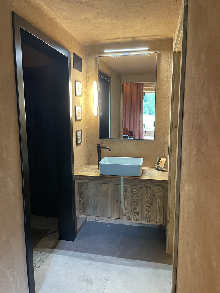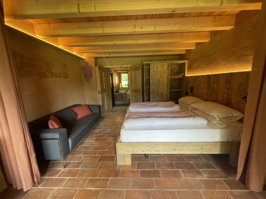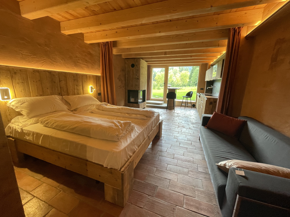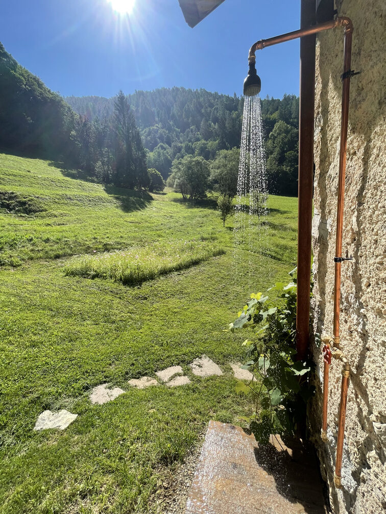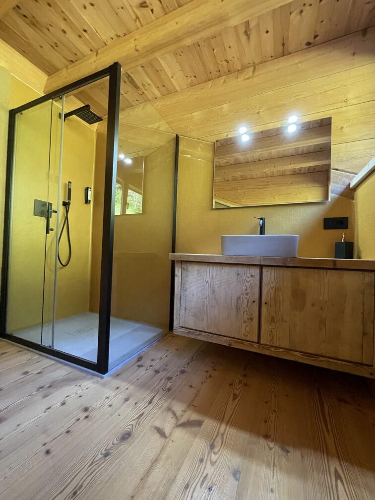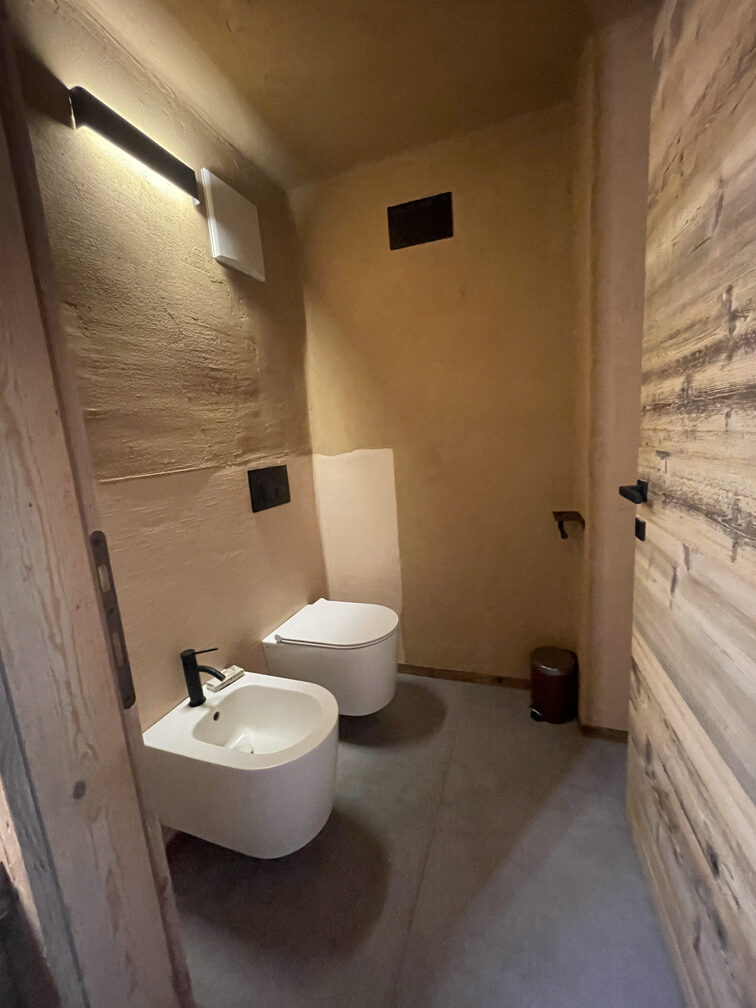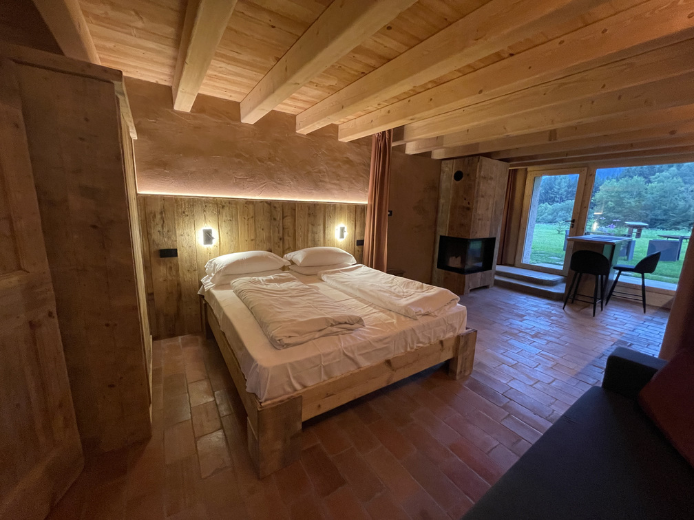 CARATTERISTICHE: fienile alpino rinnovato con tecniche di bioedilizia al fine di garantire la massima salubrità interna. Argilla, calce naturale, pavimanti in cotto antico e legno Fiemme 3000. Legno di cirmolo per tetto e solai. Doccia calda-fredda esterna. Equipaggiato di tutti i comfort, termostati in ogni vano, ventilazione meccanica controllata, Cucine attrezzate con elettrodomestici Miele. Antica stufa economica e caminetto con fuoco a vista. Locale lavanderia. Barbecue e grande braciere. La parte antica del fienile è rimasta originale ed è adibita a spazio a disposizione dell’ospite.