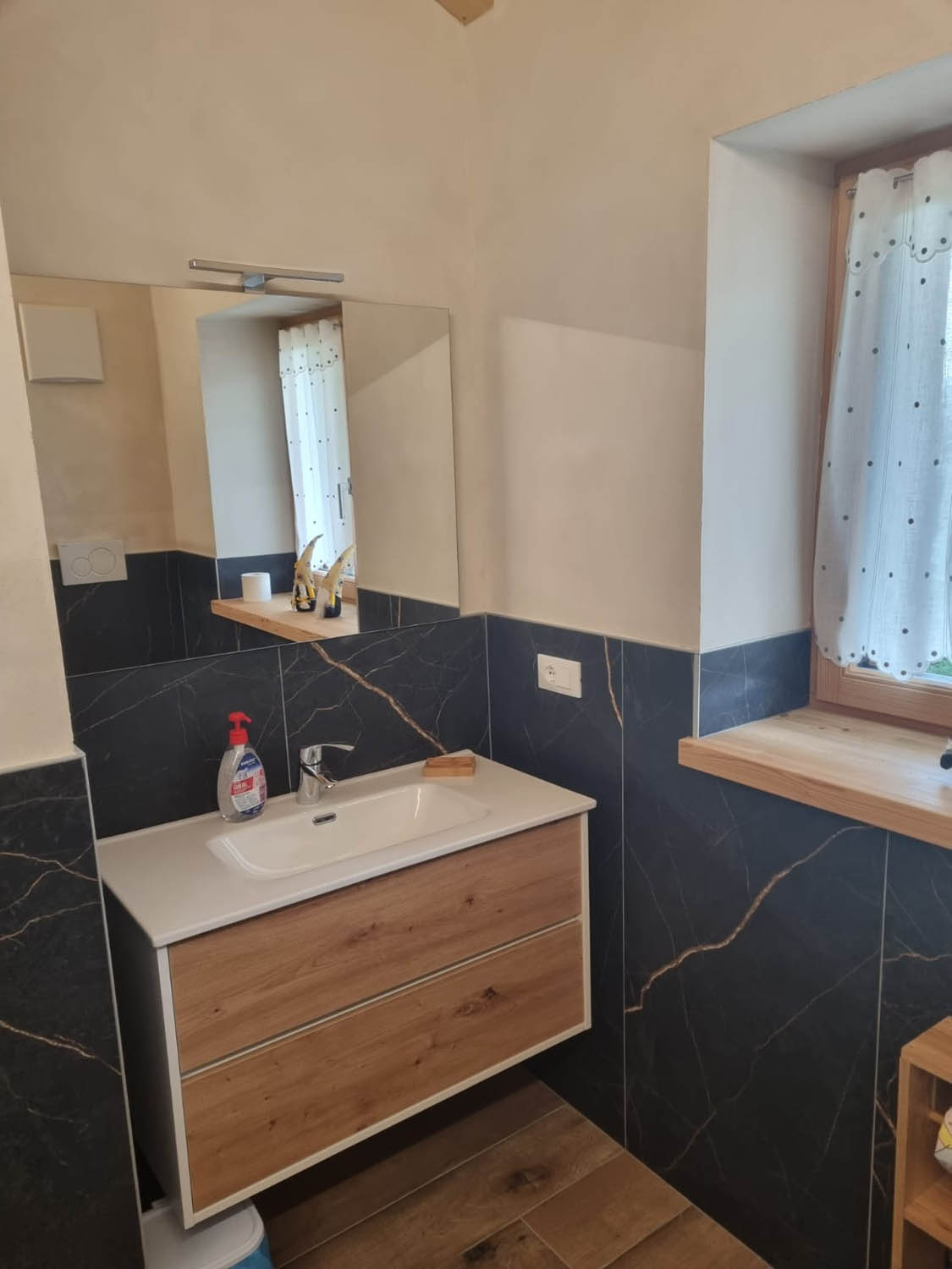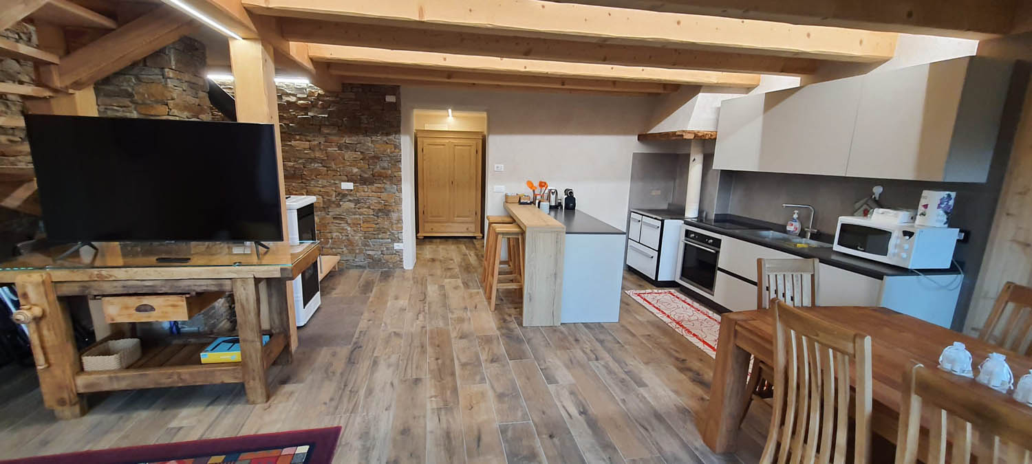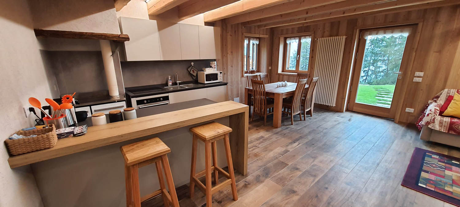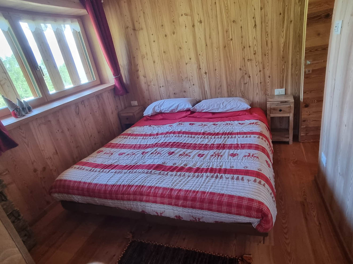 CARATTERISTICHE: Baita Giola è la parte destra di una casa bifamiliare ed è disposta su due livelli, al piano inferiore c’è cucina e soggiorno, lavanderia e bagno completo di doccia e bidet. Al piano superiore ci sono tre camere, una matrimoniale, una con due letti singoli che all’occorrenza può diventare matrimoniale e una cameretta singola che può anche essere utilizzata come piccolo soggiornetto. Sempre al piano superiore c’è il secondo bagno finestrato anche questo completo di doccia e bidet. Davanti alla casa c’è giardino attrezzato completo di barbecue in pietra, tavolone, ombrellone e sdraio. La baita ha la propria strada indipendente e posto auto. Dietro la baita c’è un enorme prato di proprietà per la gioia dei bambini e/o animali.