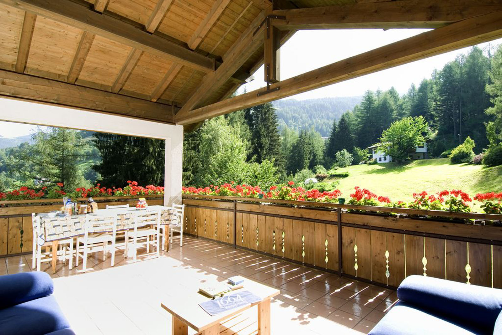CARATTERISTICHE: Baita tipicamente alpina, di recente ristrutturazione, dotata di zona giorno e zona notte di oltre 90 mq. composta da spazioso terrazzo coperto, soggiorno cucina con angolo cottura e stufa a legna, una camera matrimoniale con possibilita’ di un letto aggiuntivo e una camera con 3 letti. Provvista di doppi servizi con doccia, riscaldamento centralizzato e locale lavanderia. All’esterno, ampio spazio verde privato e posto macchina. Sono a disposizione degli ospiti tv satellitare, internet wireless, dvd player e barbecue.