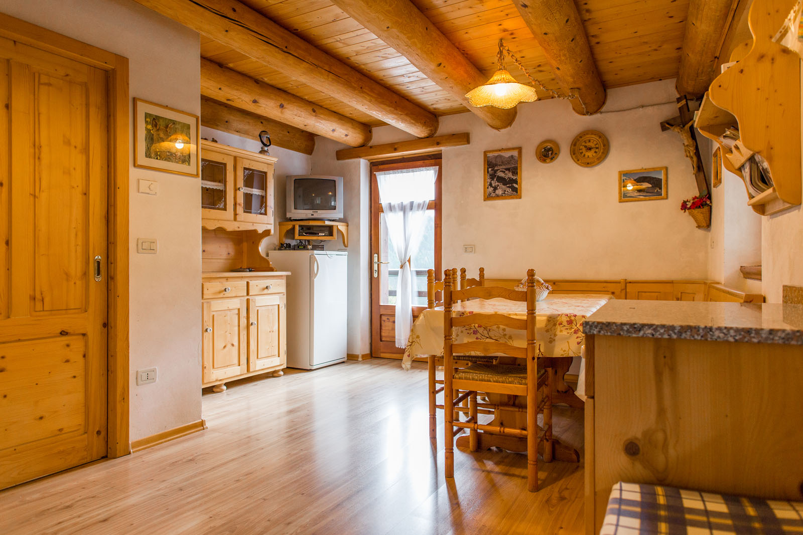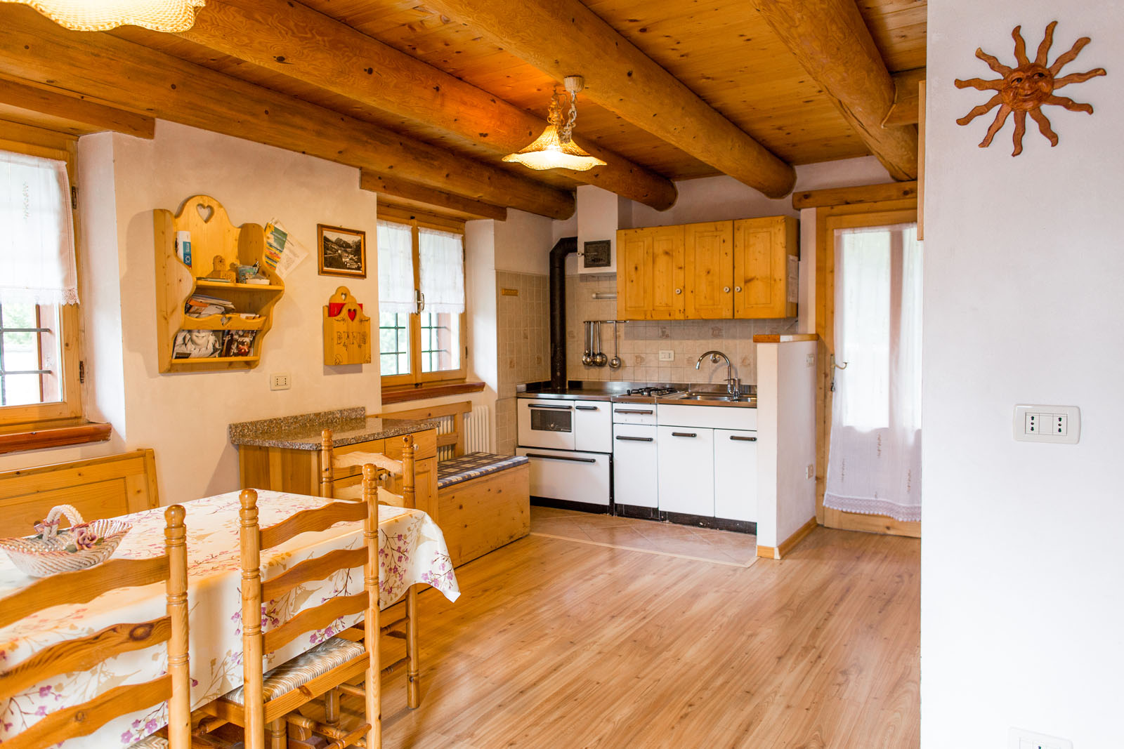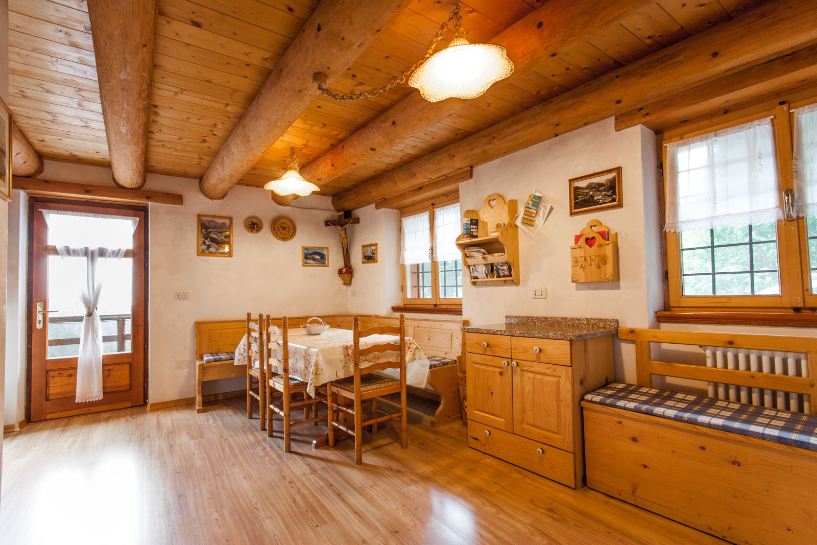 CARATTERISTICHE: Maso dalla tipica tipologia costruttiva in muratura e legno, di recente ristrutturazione, conserva le impronte del suo tempo. La struttura e’ composta al piano semi interrato da un locale ripostiglio e deposito per mountain-bike, sci e slitte. Al primo piano un ampio locale con zona cottura, cucina economica a legna, servizi con doccia (acqua calda da boiler a legna) una camera matrimoniale e balcone panoramico. Al piano mansarda una ampio locale con due letti con possibilita’ di letto aggiuntivo. All’esterno ampio spazio verde, fontana con acqua sorgiva, barbecue e posto auto privato.