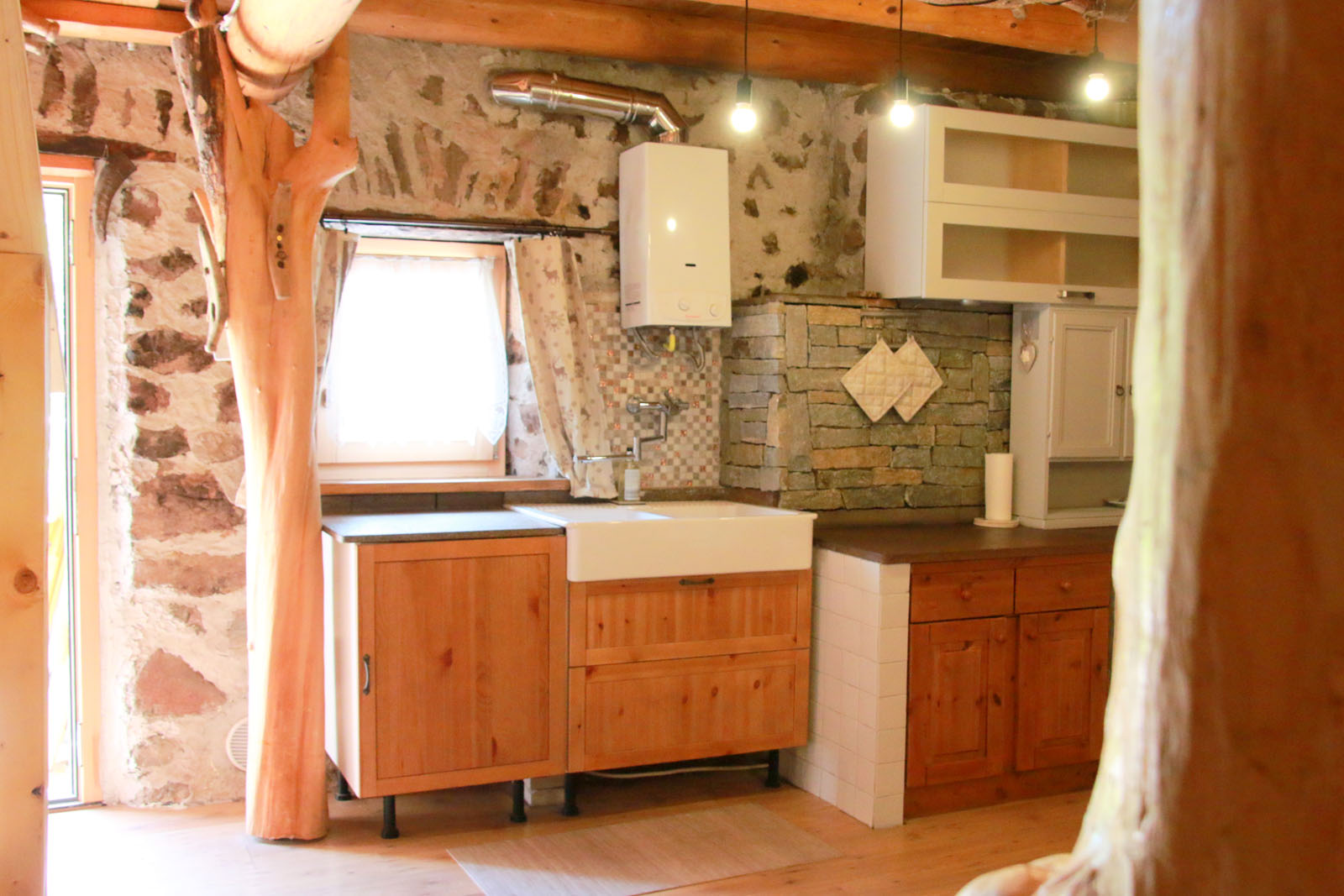 CARATTERISTICHE: Parte iniziale di un antico maso di montagna risalente alla seconda metà del 1800 è interamente ristrutturato in legno e pietra locale ed è arredato in stile rustico. Al piano terra si trovano un’ampia zona giorno con angolo cottura, stufa a legna e mussa tirolese un bagno con doccia e cantina. Al piano superiore, dove si accede mediante scala interna, si trovano due stanze comunicanti. La prima è un soppalco con piccolo balconcino, letto matrimoniale e divano. La seconda stanza è dotata di letto matrimoniale, letto a una piazza e mezzo, divano e uscita indipendente. E’ possibile aggiungere un lettino per bimbi piccoli. All’esterno si trova un giardino recintato con posto macchina e barbecue.
