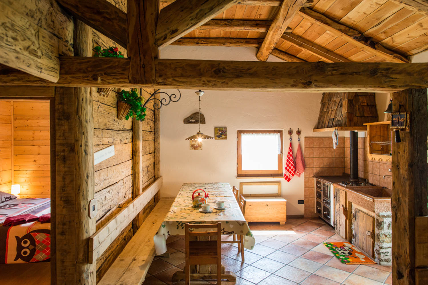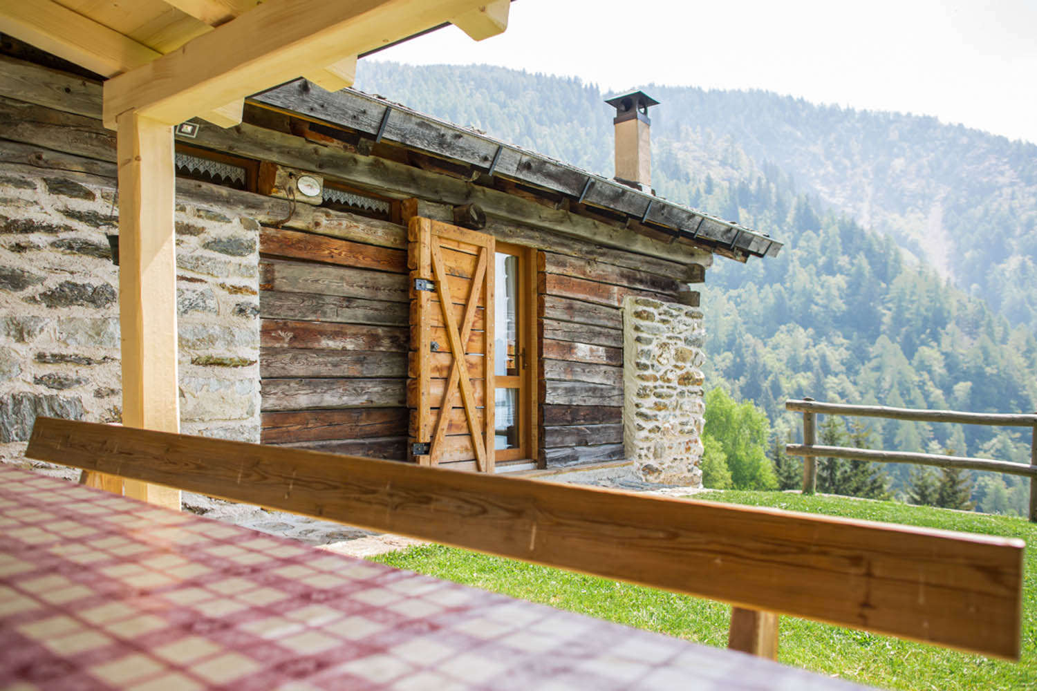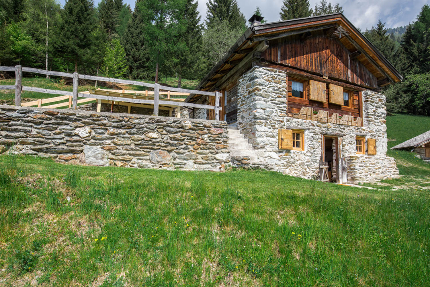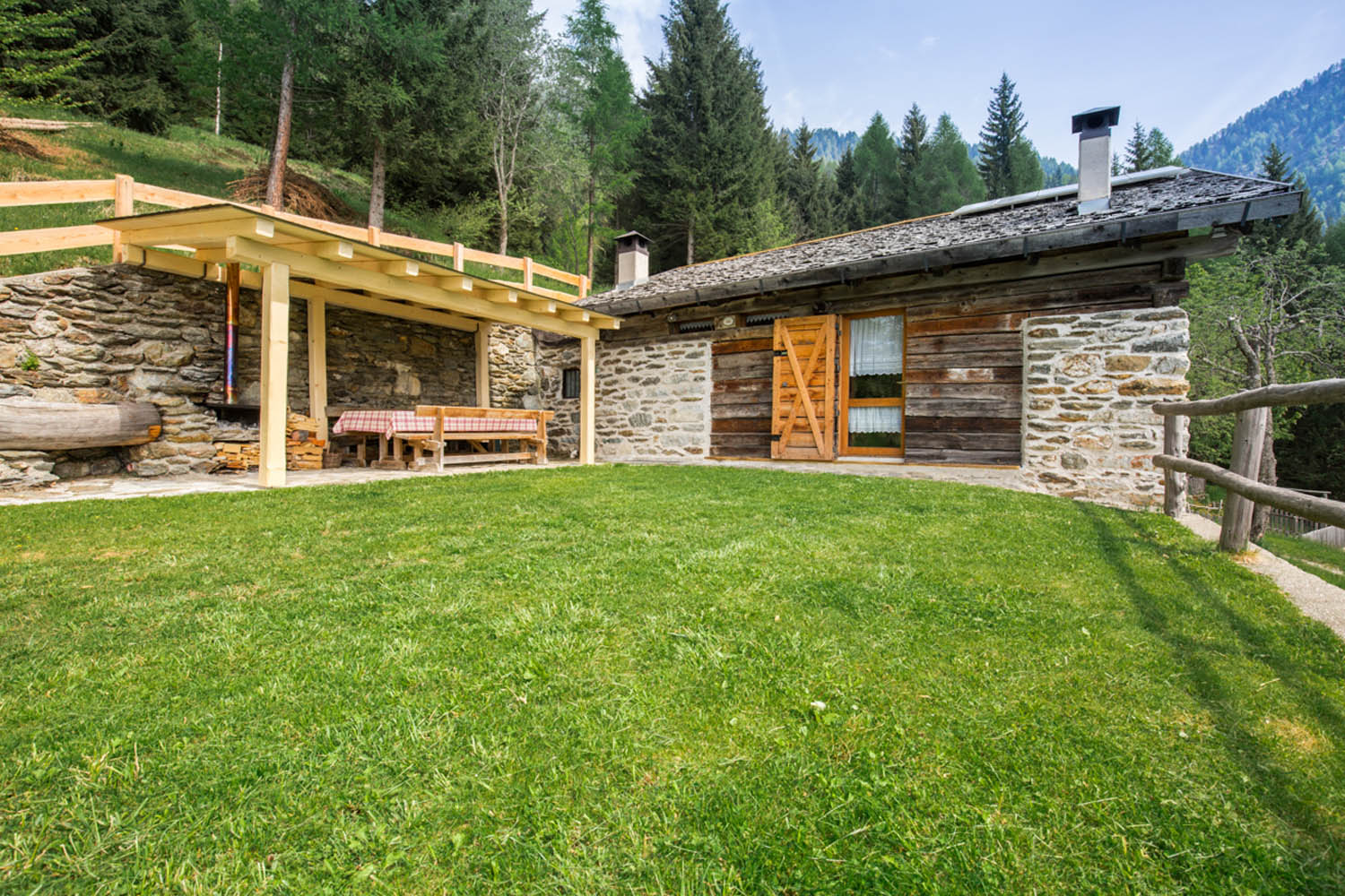 CARATTERISTICHE: Rustica baita di montagna in sasso e legno ristrutturata in modo accogliente disposta su un piano. Ampio locale cucina – soggiorno con stufa a legna e caminetto. 2 stanze da letto, rispostiglio e bagno con doccia. All’esterno barbecue con grande tavolo coperto.