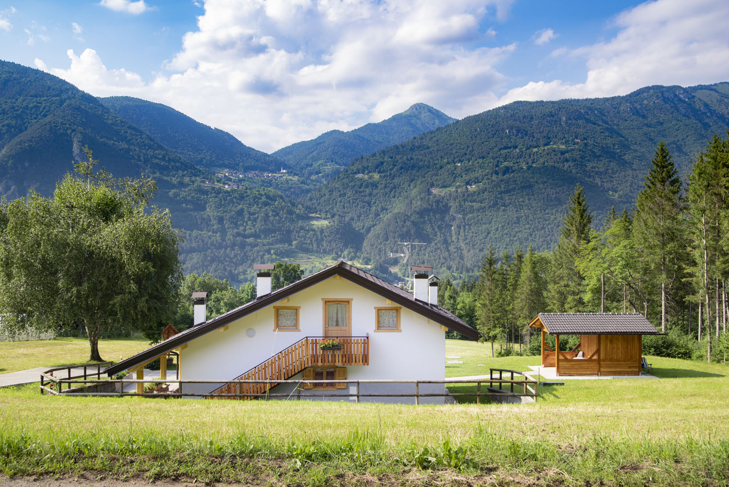 UBICAZIONE: La baita è stata costruita nuova a circa 600 m da paese di Zuclo in Val Giudicarie – sulla strada per la Zona di Passo Durone. Si trova a pochi chilometri da Tione centro amministrativo della Valle. Dalla Baita i può ammirare il gruppo dell’Adamello con il Carè Alto. Dalla Baita si possono raggiungere facilmente Pinzolo, Madonna di Campiglio ed il Gruppo delle Dolomiti di Brenta e le Cascate Nardis. Inoltre Riva del Garda, le Terme di Comano e di Caderzone. Punto di partenza anche per passeggiate a piedi, piste ciclabili, punti sportivi vari e anche è possibile pescare nei torrenti della valle per gli appassionati. In inverno è possibile raggiungere la vicinissima pista da sci più bassa d’Italia il Centro Sci di Borgo Lares, adatta in particolare alle famiglie, con grande ristorazione La Contea, neve artificiale. e pista illuminata, Bolbenolandia ecc.