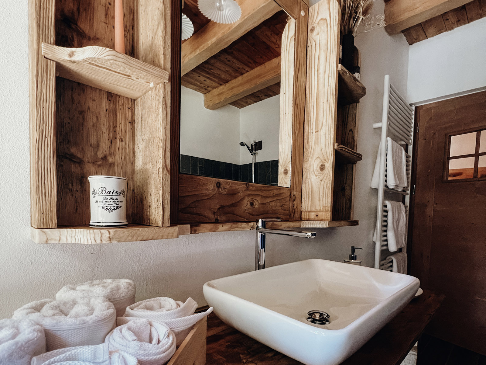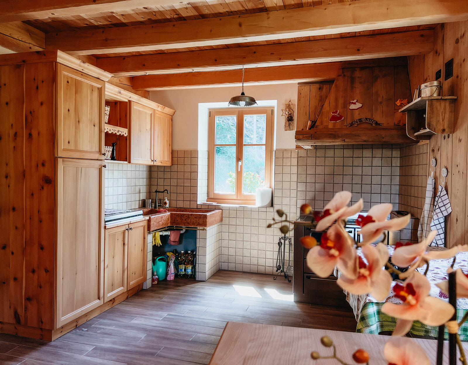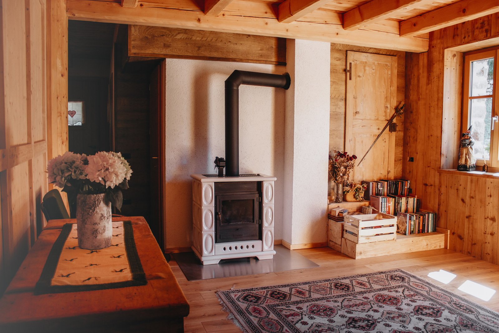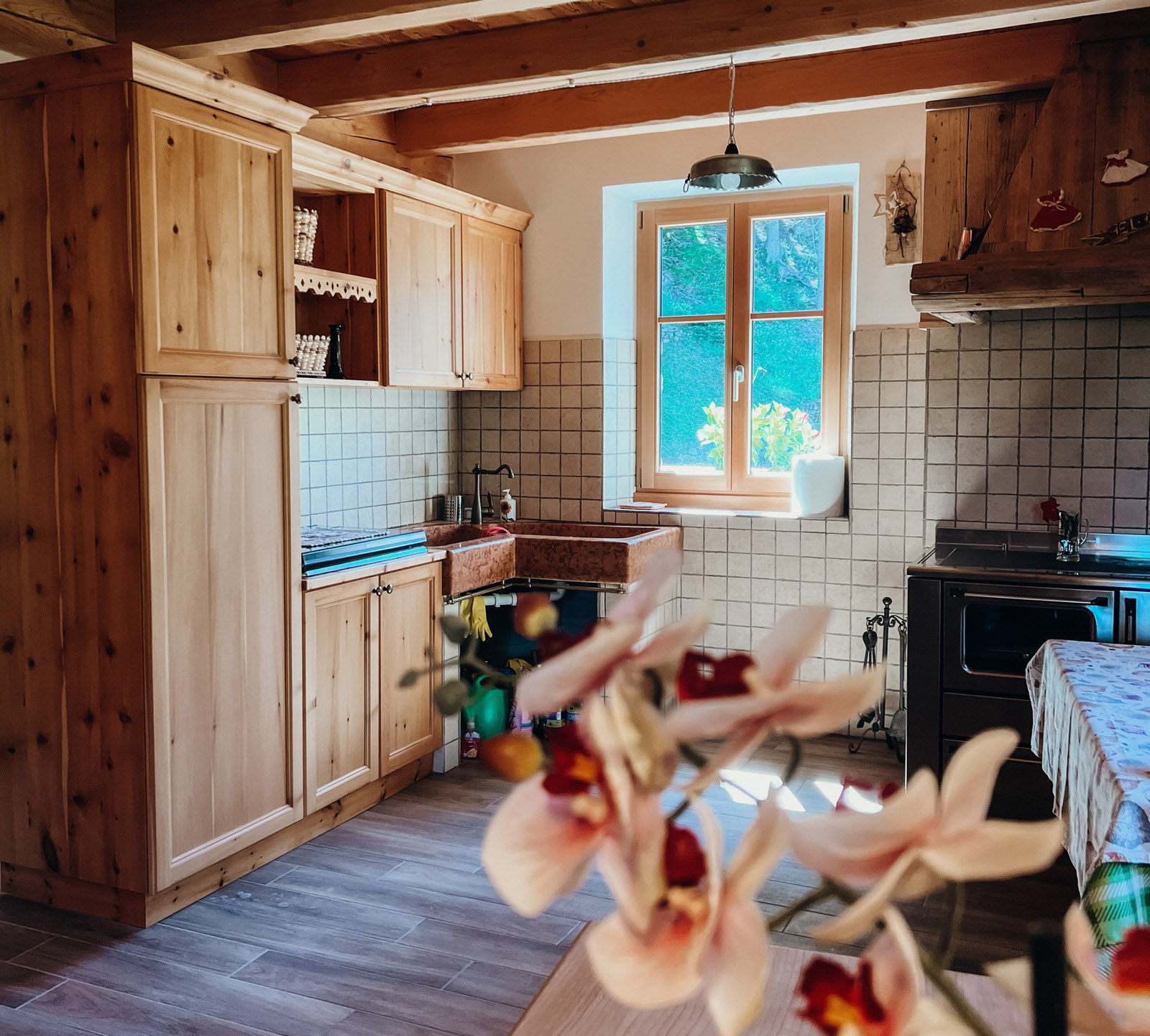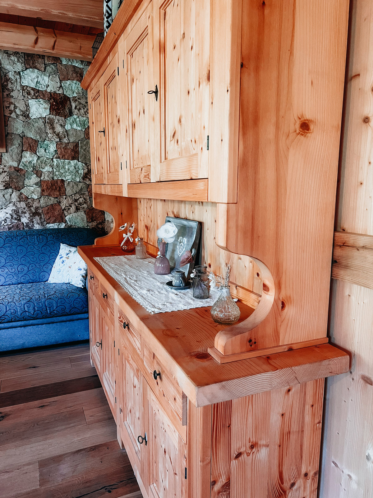 CARATTERISTICHE: La nostra baita è di recente costruzione, costruita e arredata con materiali pregiati e accuratamente scelti dalla nostra famiglia. Può ospitare fino ad un massimo di 4 persone, ideale per coppie e famiglie. La baita dispone di un enorme prato circostante alla proprietà, dove poter godersi il sole in tranquillità. È dotata di luce, fornita dai pannelli fotovoltaici, acqua calda e acqua corrente. Il piano abitabile è formato da un’ampia entrata, una cucina con fornello a gas e a legna, due camere da letto e un bagno.